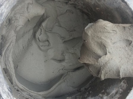 5. 攪拌好的膠泥(留心觀察成膠后的質(zhì)感,保障攪拌質(zhì)量,不可以太稀否則會導(dǎo)致粘貼瓷磚滑移,或瓷磚粘結(jié)劑干透時間加長,圖為攪拌好的膠泥。)